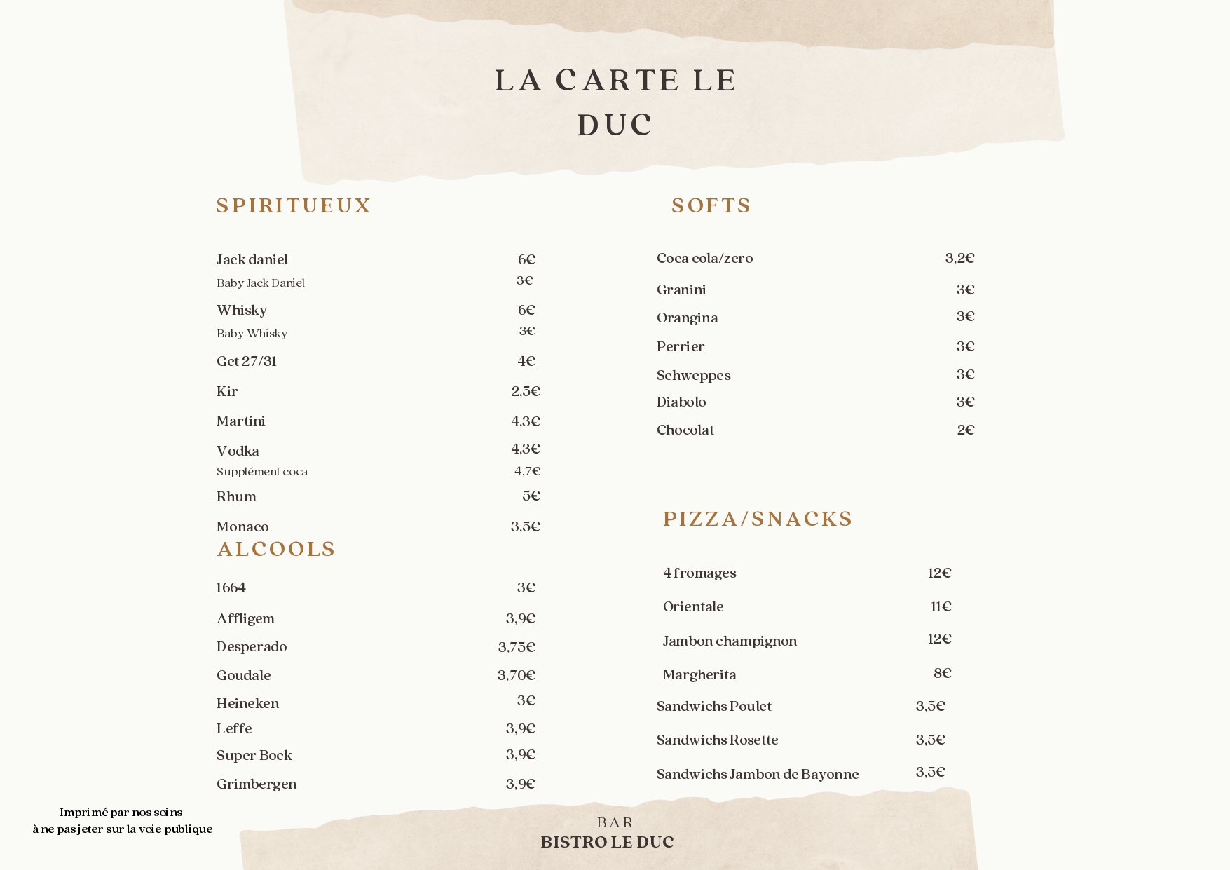 Le Bistro Le Duc vous accueille dans une ambiance chaleureuse et rustique, idéale pour partager un moment convivial autour d’un verre, d’un café ou d’un encas.